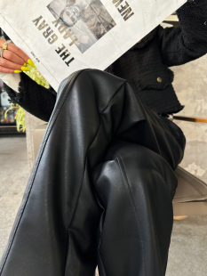 新款 女春季 直筒窄版 阔腿皮裤 猫猫家加长女裤 高个子拖地裤 微喇叭裤