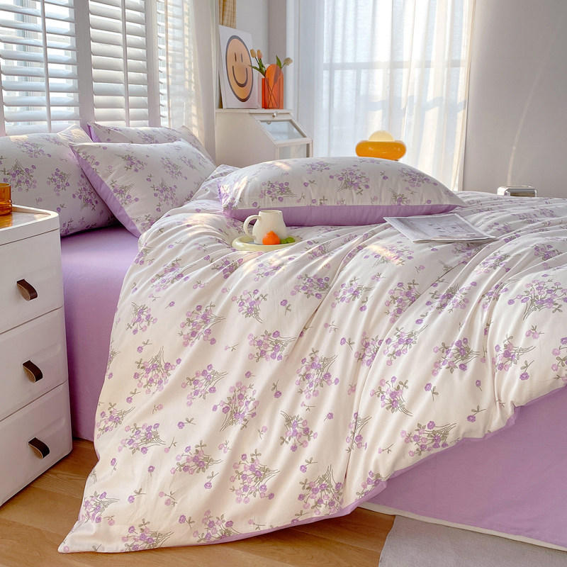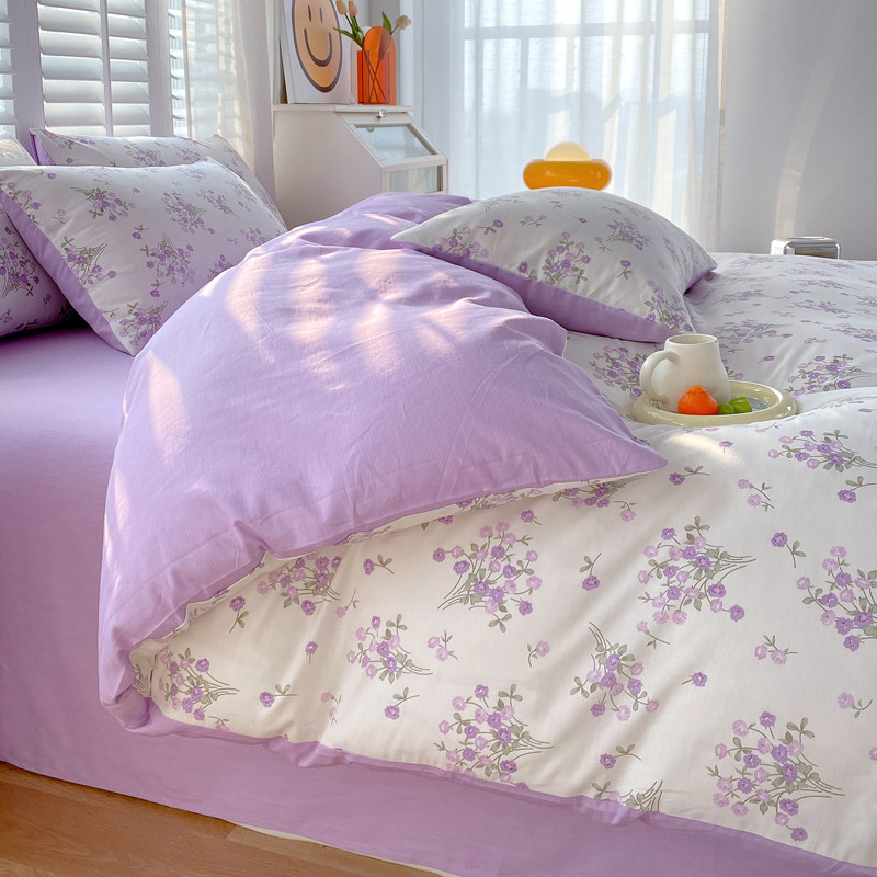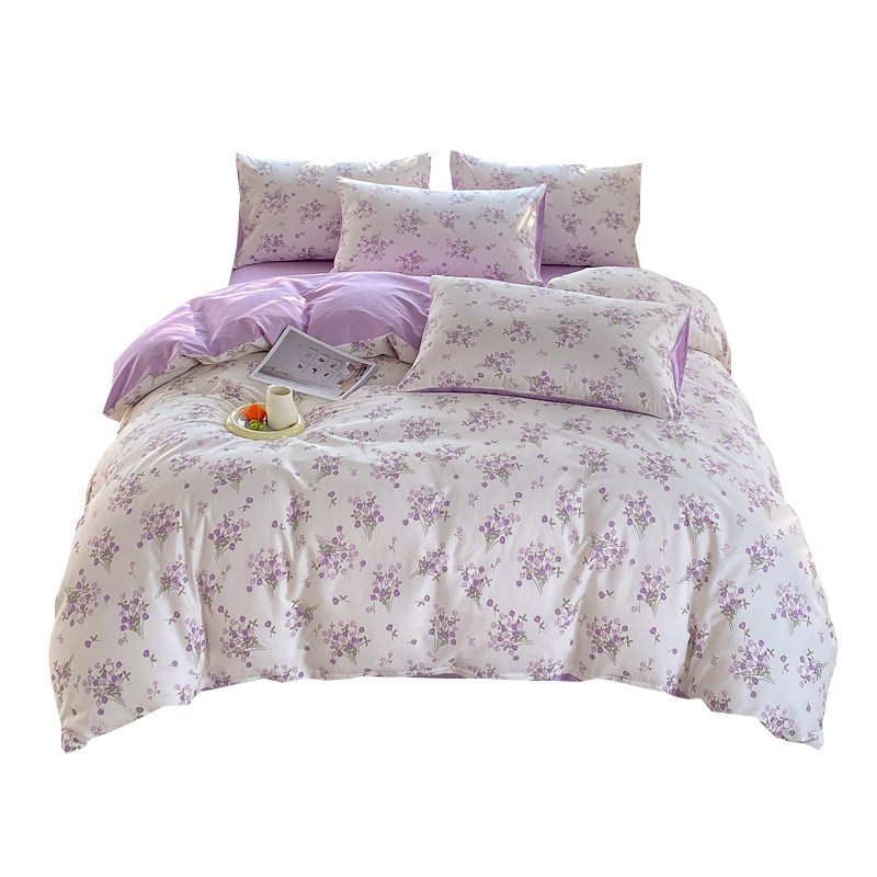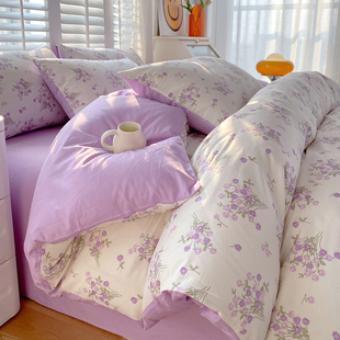 2026新款 少女心紫色小碎花床上四件套纯棉全棉三件套被套床单床笠