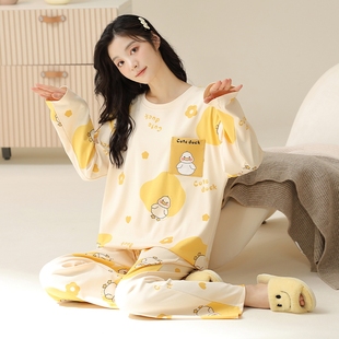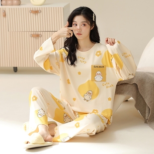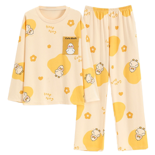 睡衣女薄款 冬夏款 大码 套装 学生宽松家居服 自带胸垫一体长袖 春秋季
