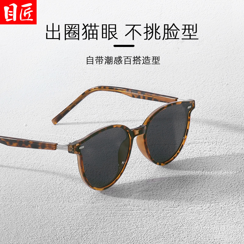 江疏影同款 高级感小脸复古琥珀色雪地太阳眼镜 玳瑁色豹纹墨镜女款