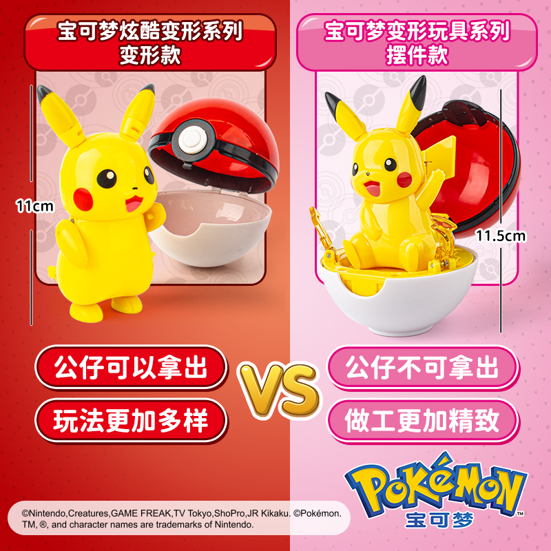 庄臣宝可梦变形球比皮卡丘玩具手办模型玩偶摆件公仔小火龙杰尼龟