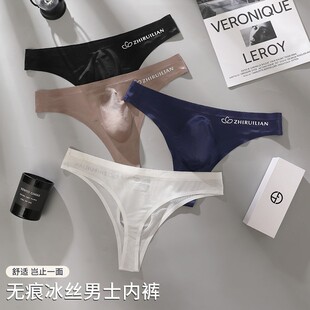 男款 男生冰丝丁字裤 无痕运动健身内裤 欧美性感透明超薄单层一片式