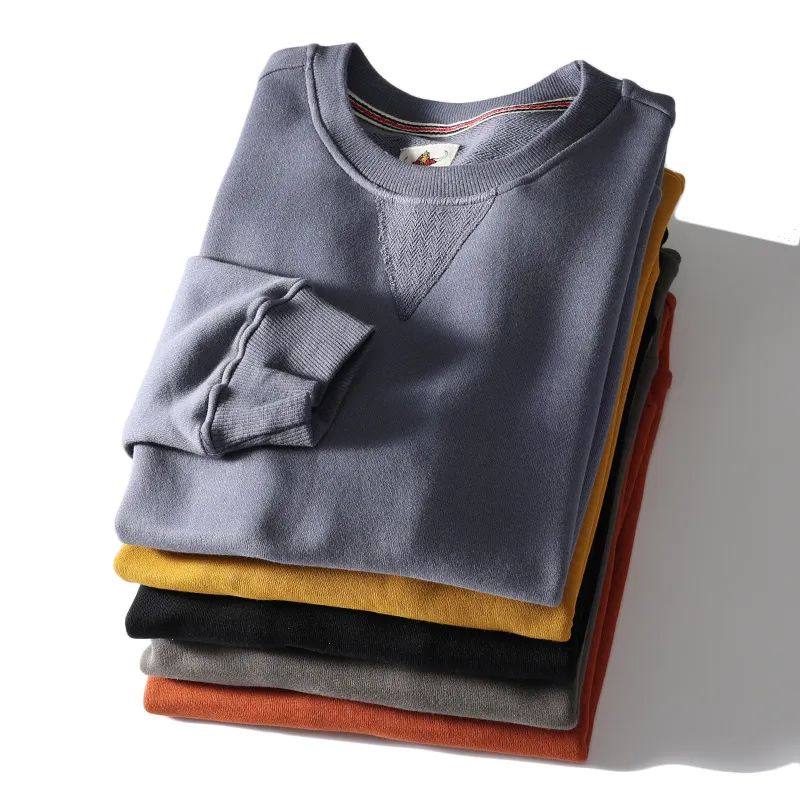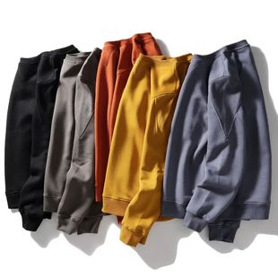 卫衣外套 重磅复古针织毛圈宽松纯色休闲圆领套头男士 情侣款 秋季