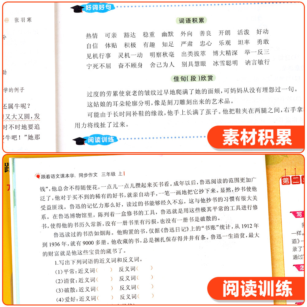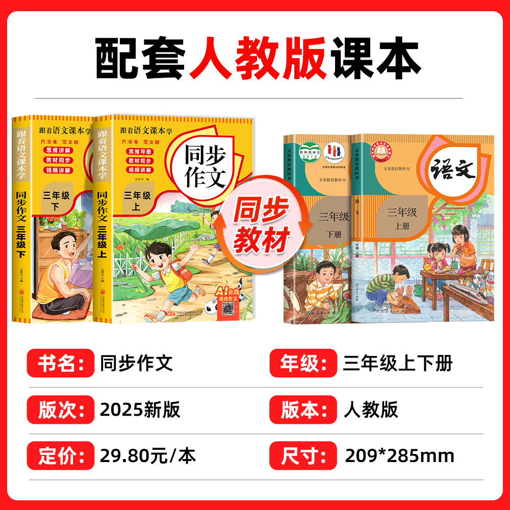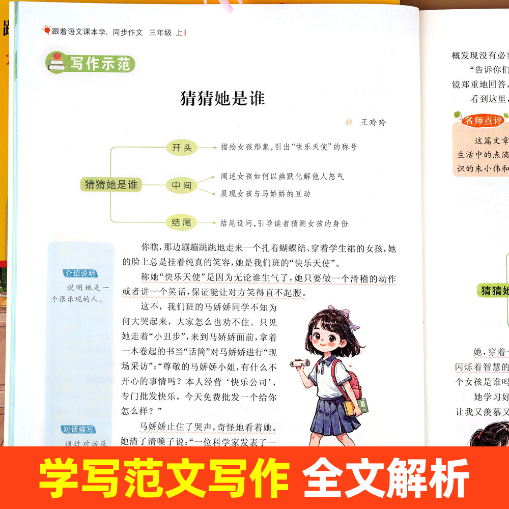 小学作文书小学生黄冈优秀作文大全3年级范文仿写素材全解语文满分作文下册开心全程指导 三年级上下册同步作文人教版 2026新版
