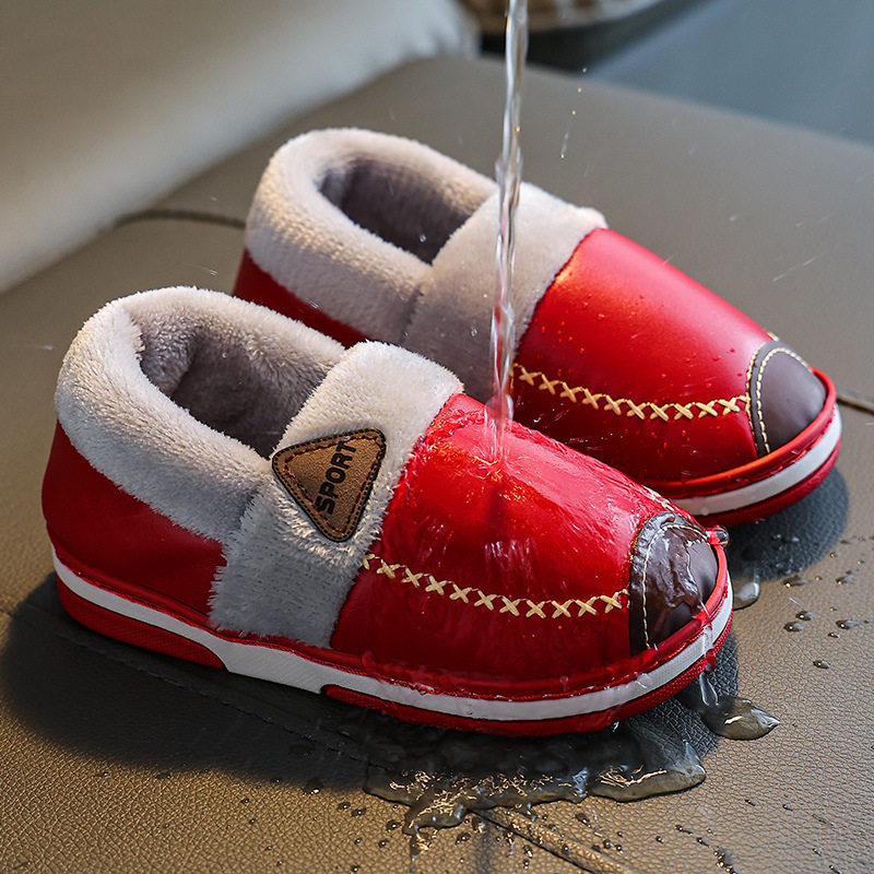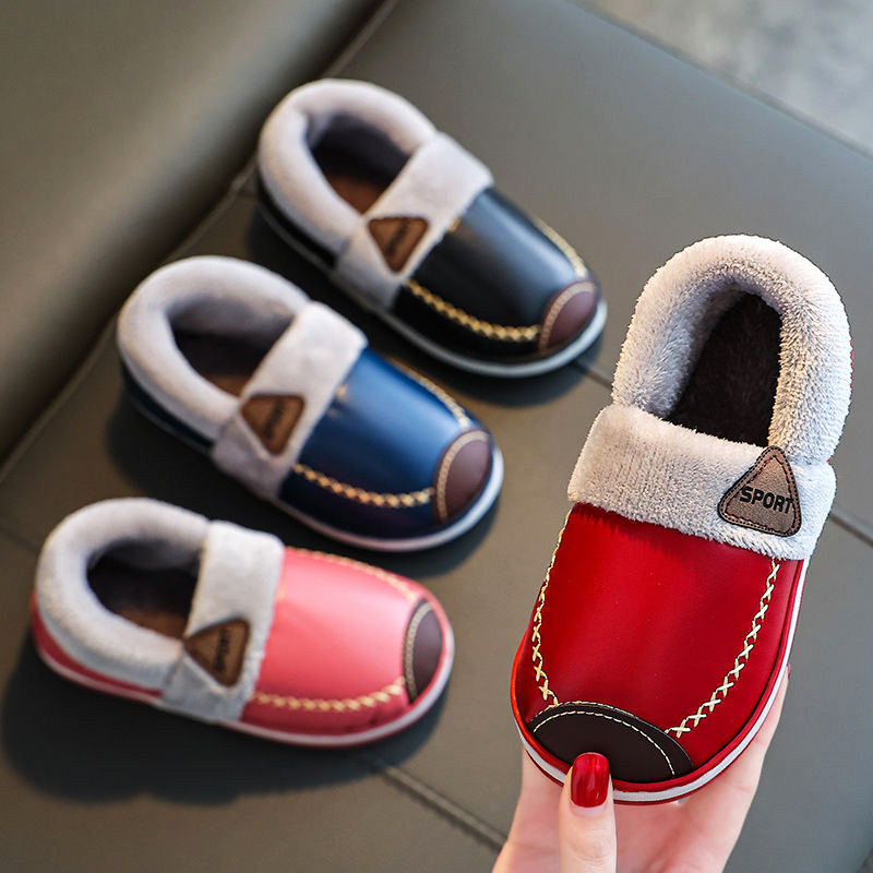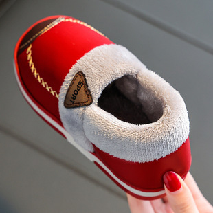 女 加厚底防滑居家室内外魔术贴居家保暖棉拖鞋 冬季 牛筋底男童棉鞋
