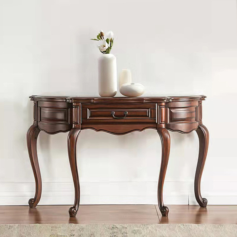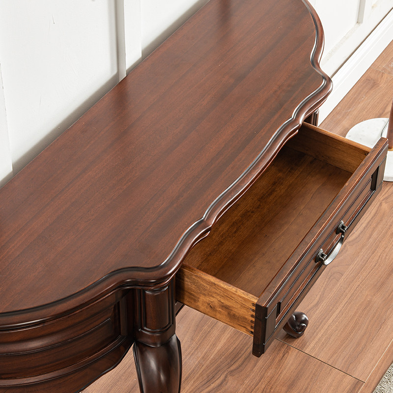美式 置物架桌子置物台 实木半圆玄关靠墙黑色玄关柜法式