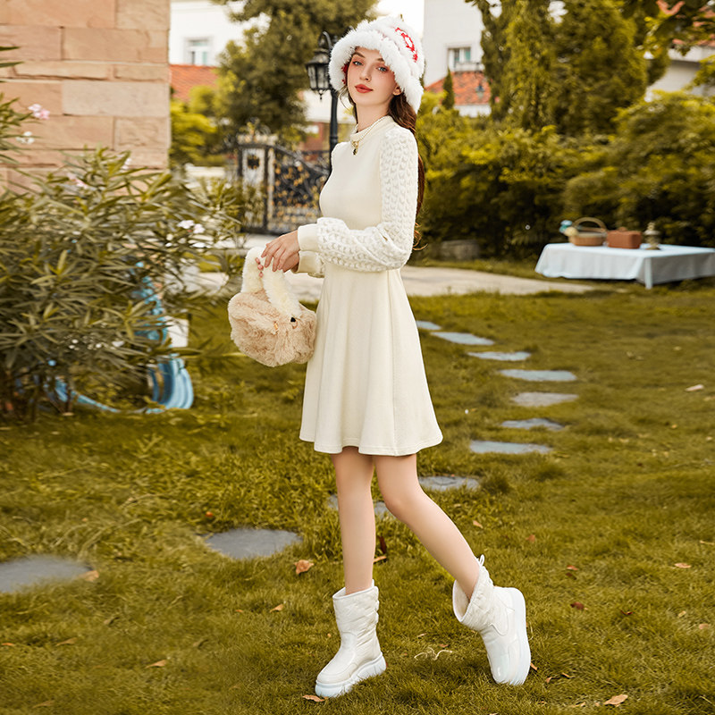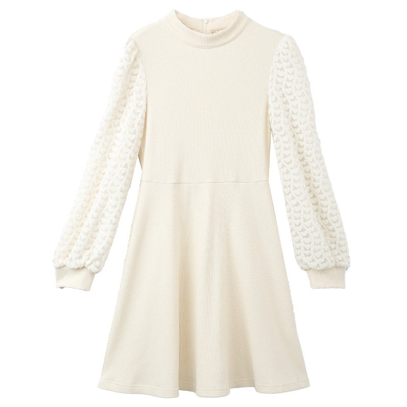 法式 蕾丝拼接针织连衣裙女设计感打底内搭收腰小个子秋冬新款