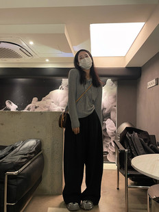 女灰色百搭直筒裤 留下1992 慵懒时髦拿捏到位拖地裤 腿 钟爱大裤