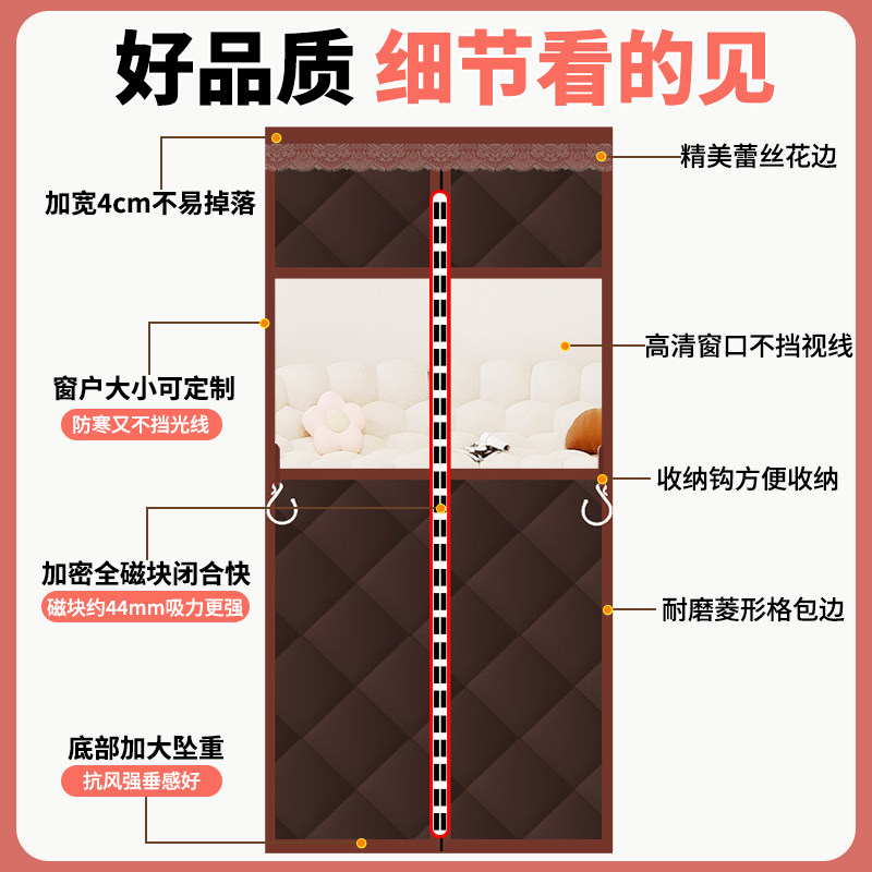 冬季 加厚棉门帘家用防风保暖挡风自吸磁铁免打孔开窗口透明隔断帘