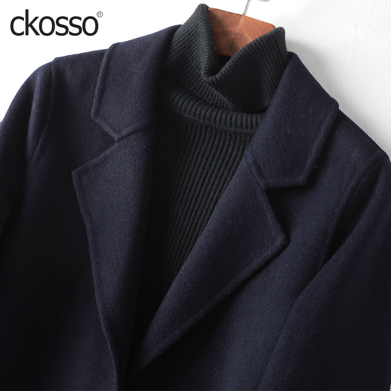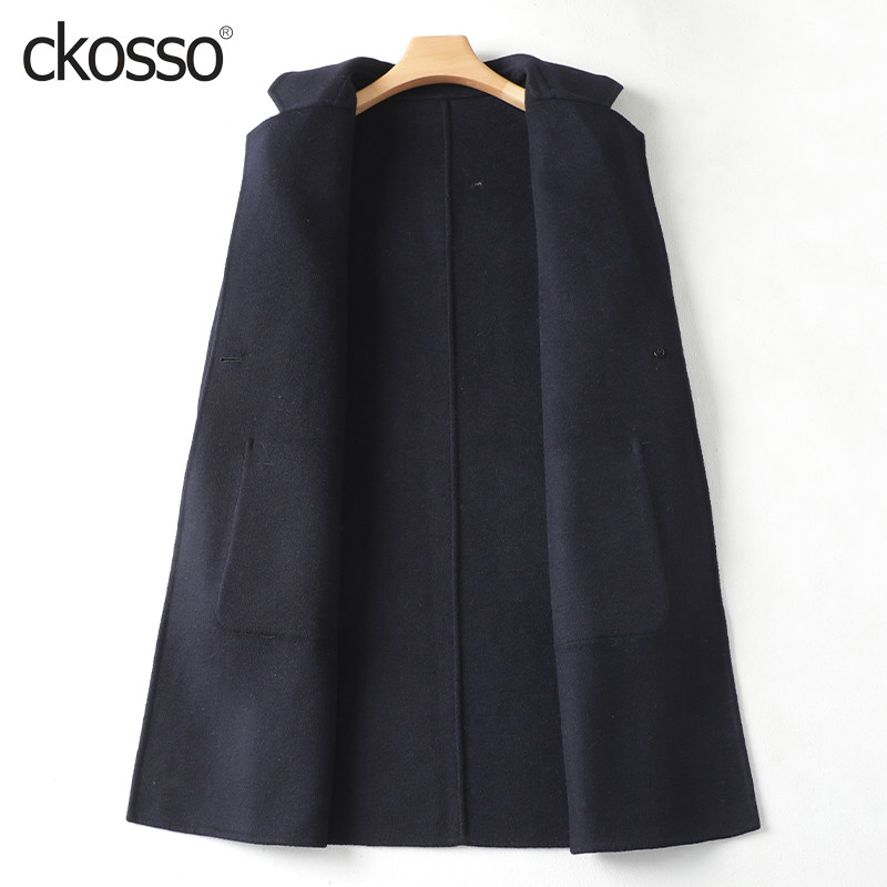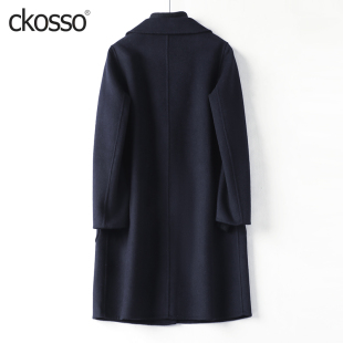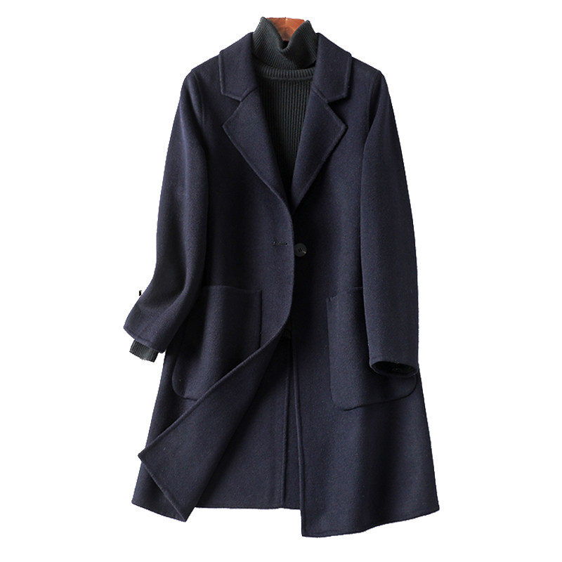 双面羊毛大衣女 领藏青轻奢气质2026春秋新款 毛呢外套女中长款 西装