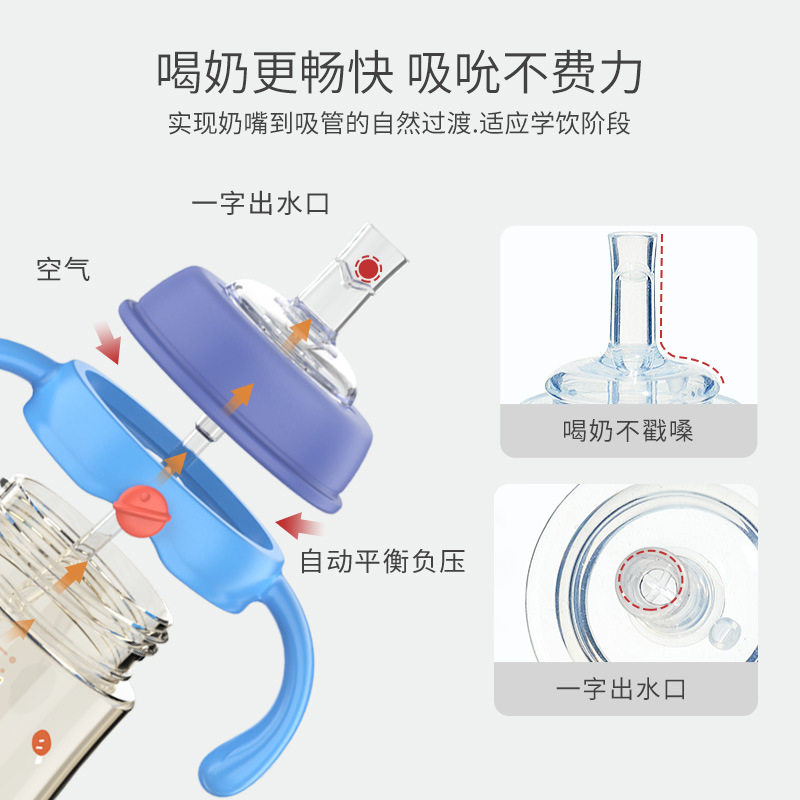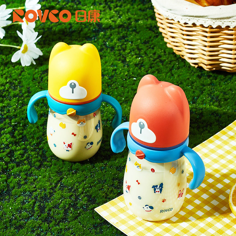 日康N1060带手柄吸管杯吸嘴奶瓶宝宝训练杯PPSU婴儿喝水杯喝奶杯