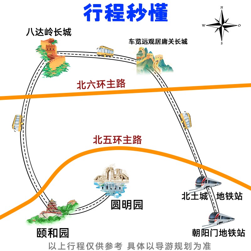 颐和园 八达岭长城 圆明园一日游可选五环内含接 北京全景旅游