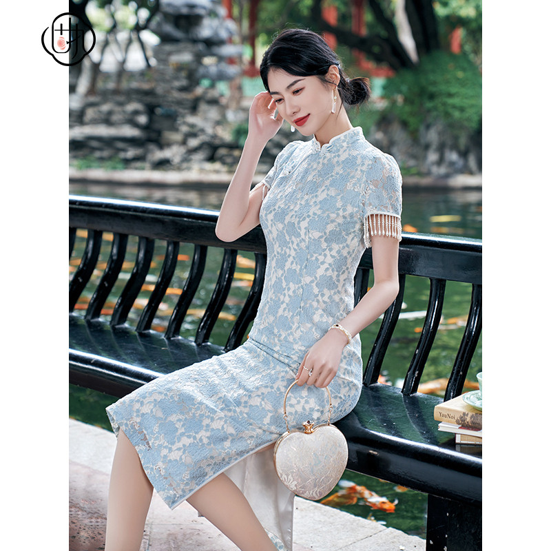 流苏蕾丝气质旗袍连衣裙42642QP09127 中国风短袖 固执夏季 新款