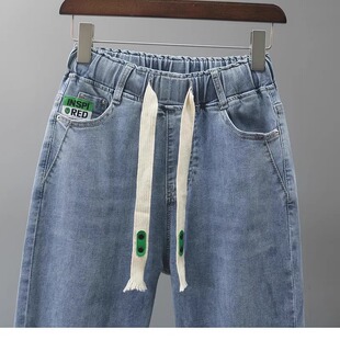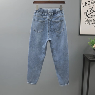 显瘦萝卜裤 浅蓝色弹力宽松哈伦裤 女2026春秋新款 松紧腰弹力牛仔裤