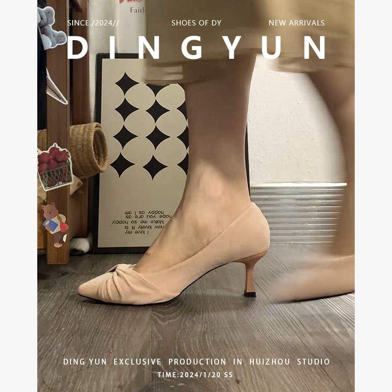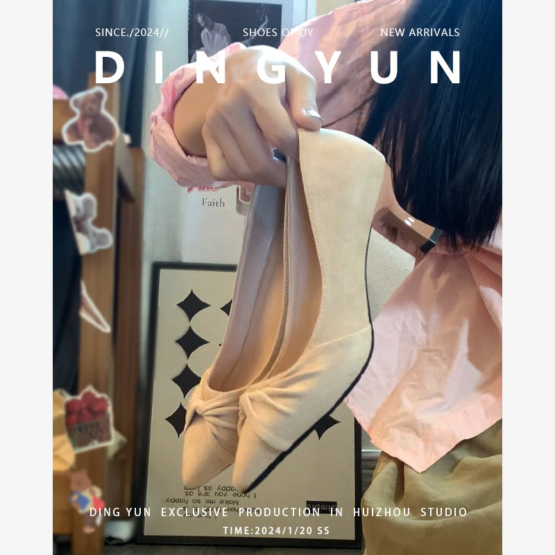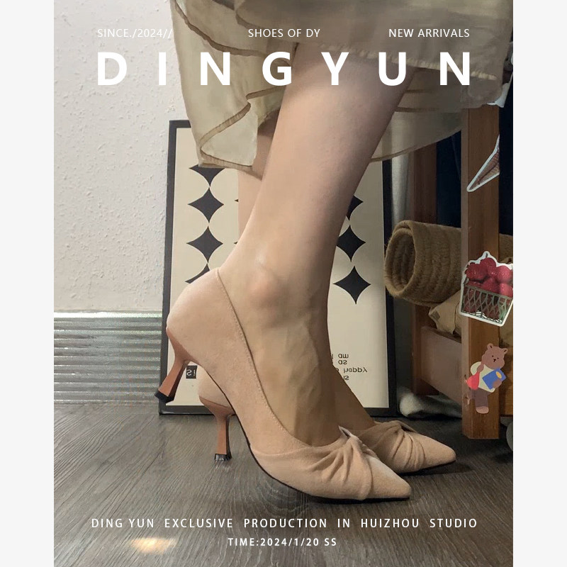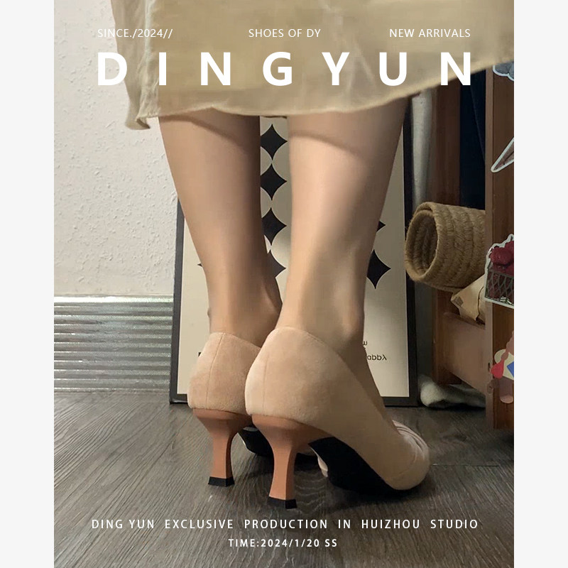 不累脚通勤温柔单鞋 绝美伴娘鞋 绒面 dingyun丁允裸色高跟鞋 羊皮版