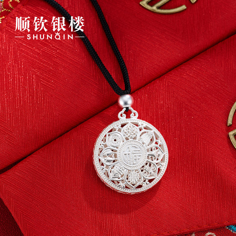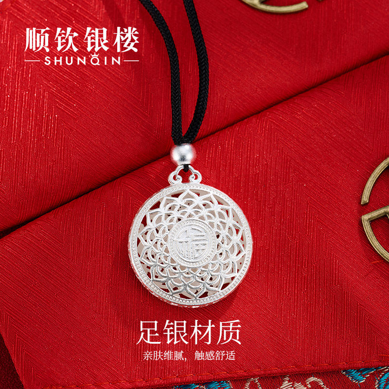顺钦银楼S999足银福莲吊坠女足银平安扣国风新中式 百搭纯银项链
