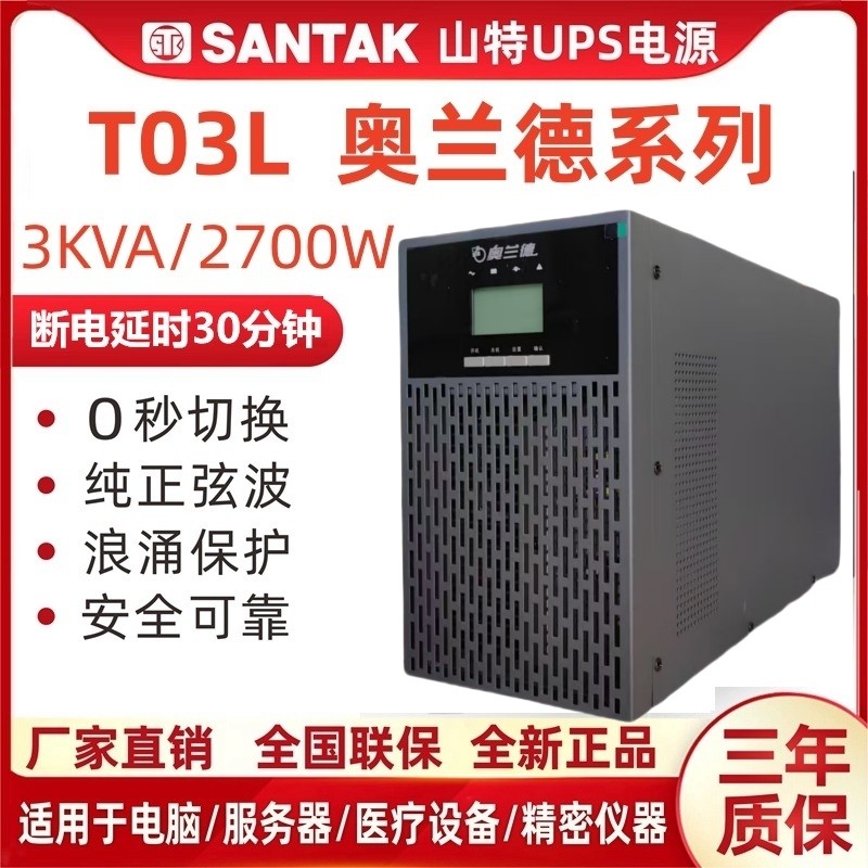 8小时 2700W外接电池30分钟1 山特奥兰德UPS电源T03L在线3KVA