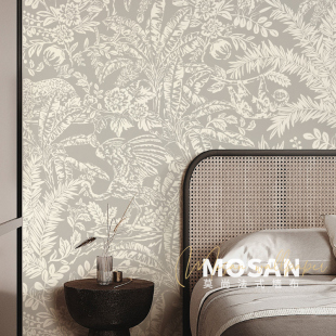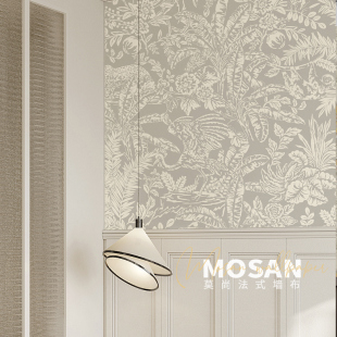 法式 艺术丛林壁纸中世纪电视背景墙家用壁布卧室墙纸 手绘墙布美式