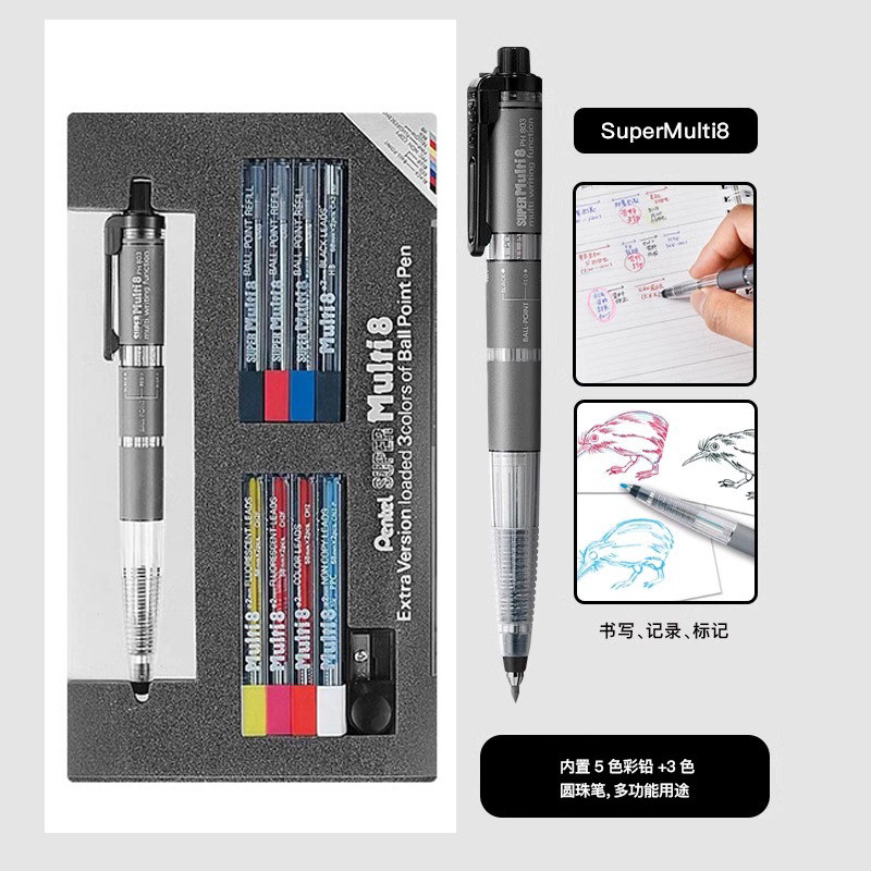 日本派通Pentel八色铅笔Multi 8彩色铅笔2.0mm绘图速写涂鸦圆珠笔