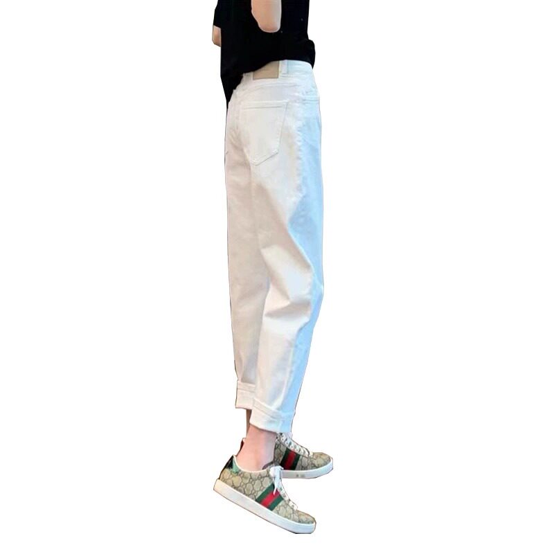 高腰宽松小个子九分老爹萝卜裤 新款 女2024年春秋季 白色哈伦牛仔裤