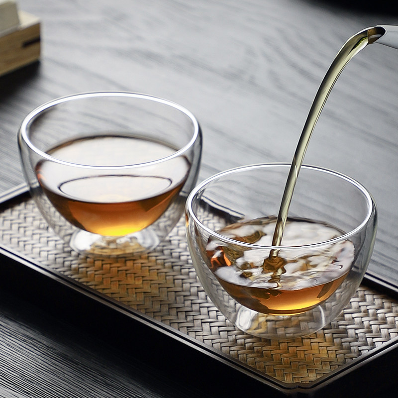 耐高温不烫手双层透明玻璃喝茶杯茶碗功夫茶具小茶杯品茗杯高硼硅