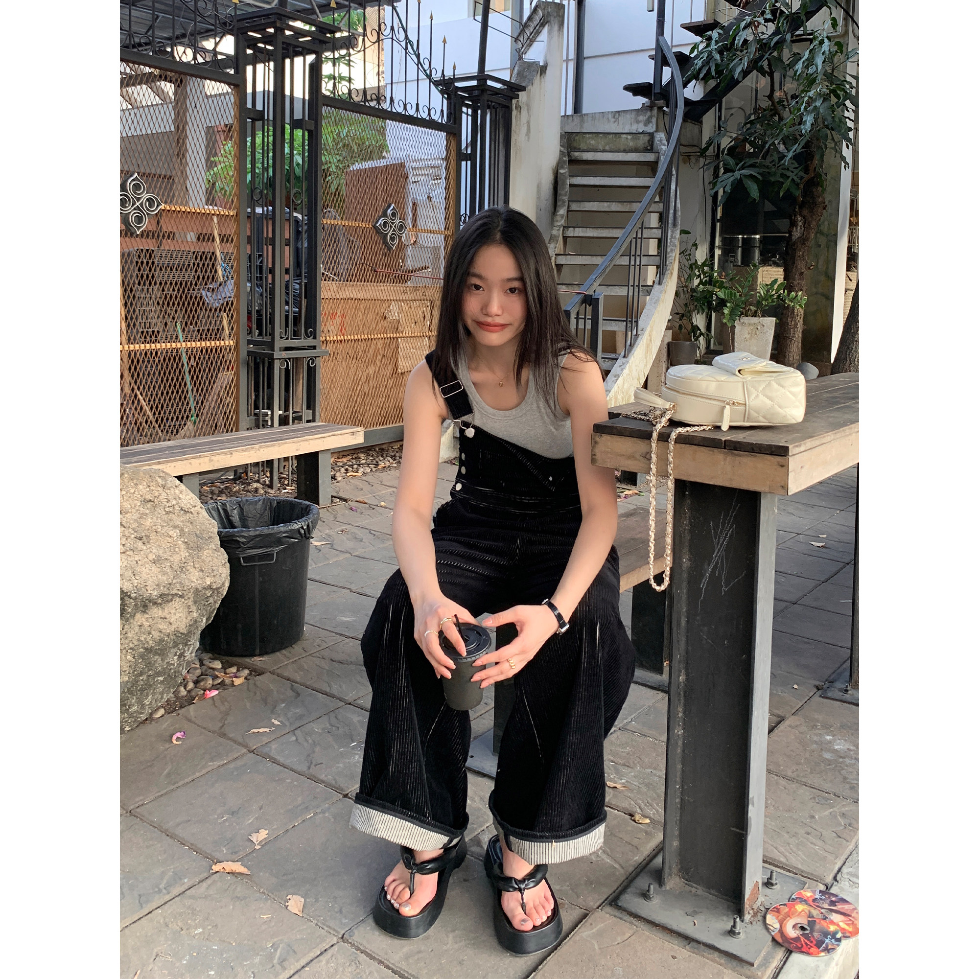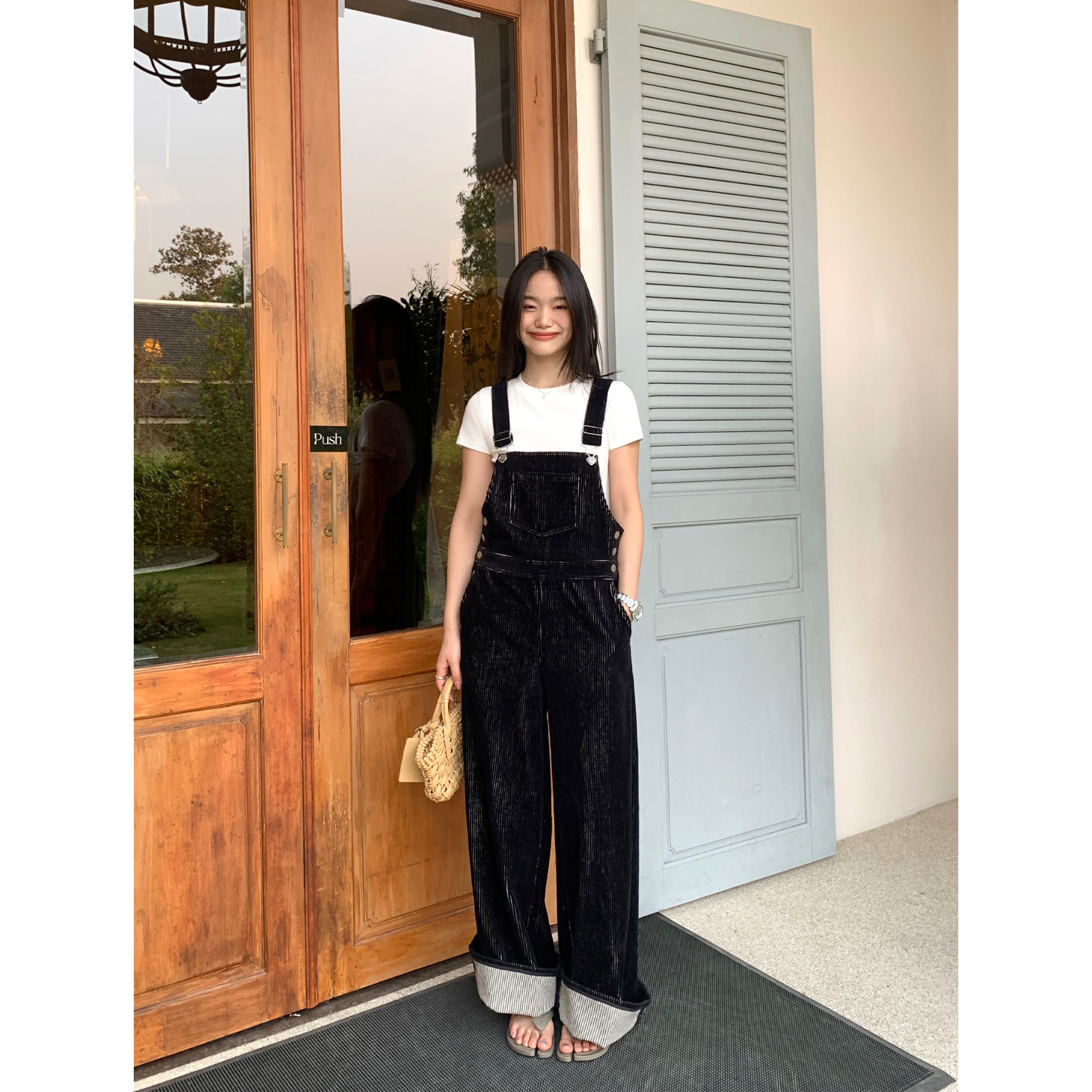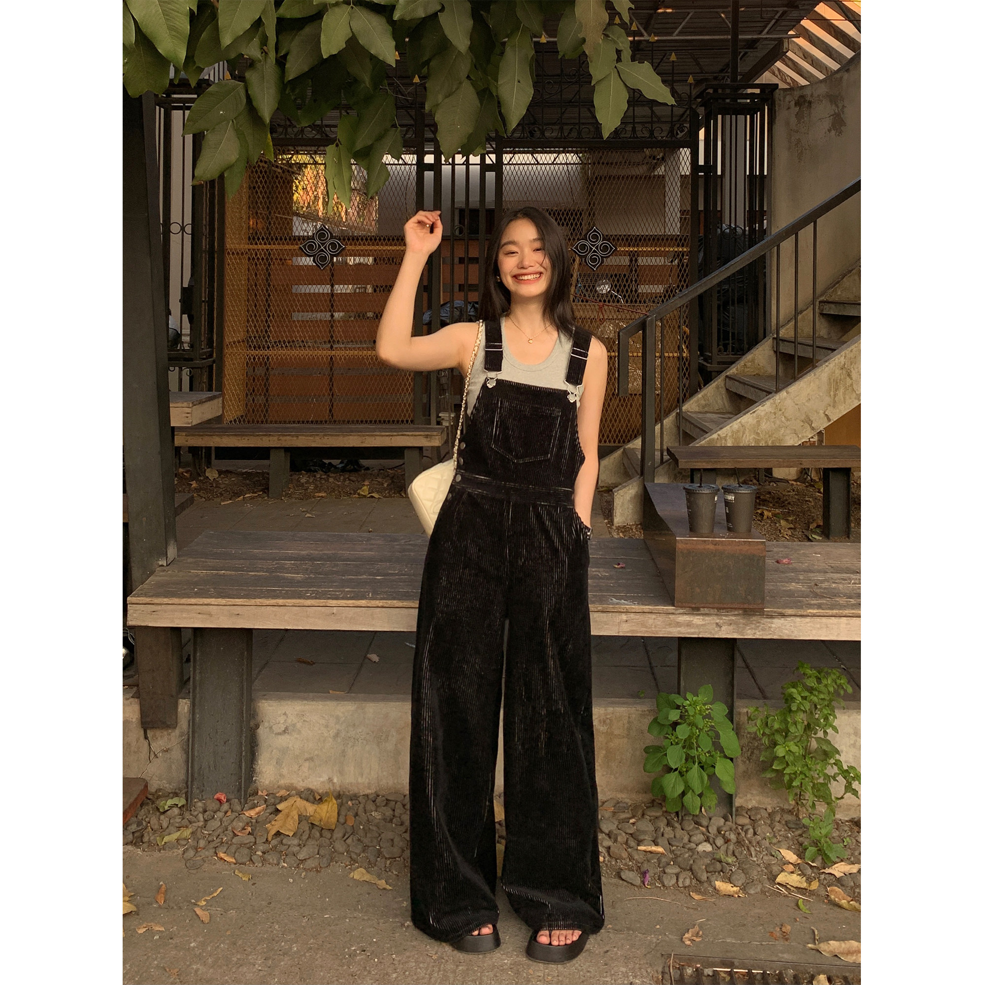 宽松拖地阔腿裤 pusumede 女连体裤 休闲灯芯绒背带裤 现货6.5折
