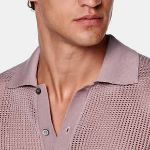 Polo衫 SUITSUPPLY紫色棉桑蚕丝混纺男士 编织短袖