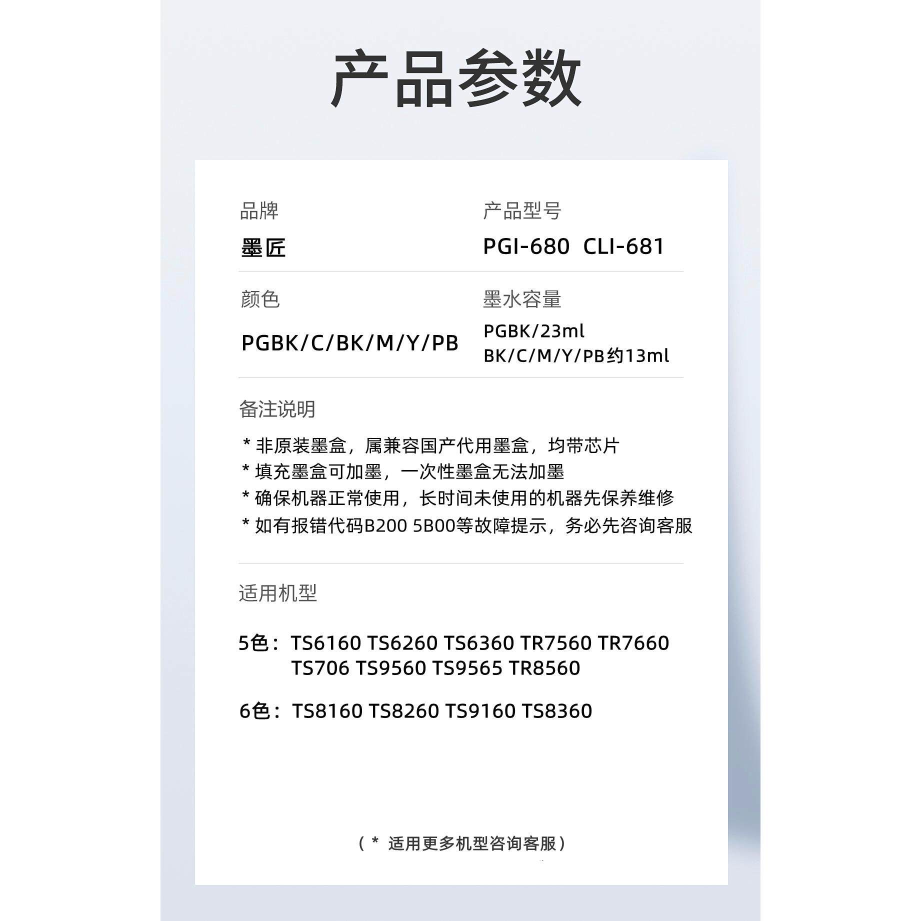 681墨盒TS9565 TS8360 9560 8260 TR7660墨盒 TS6360 适用佳能680