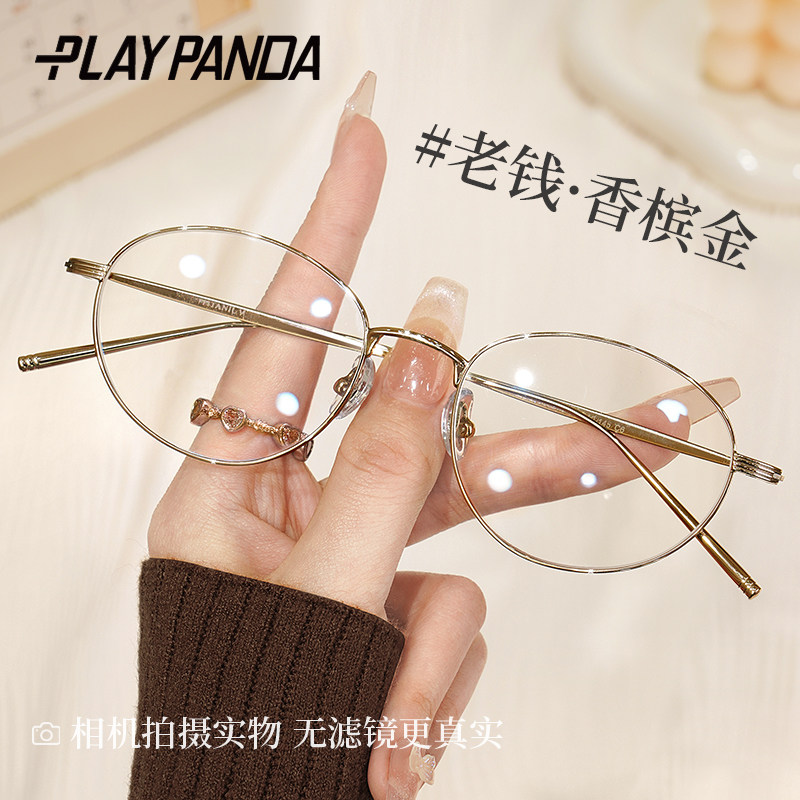 纯钛超轻椭圆框金丝眼镜女近视可配度数高级感网红老钱风小框眼镜