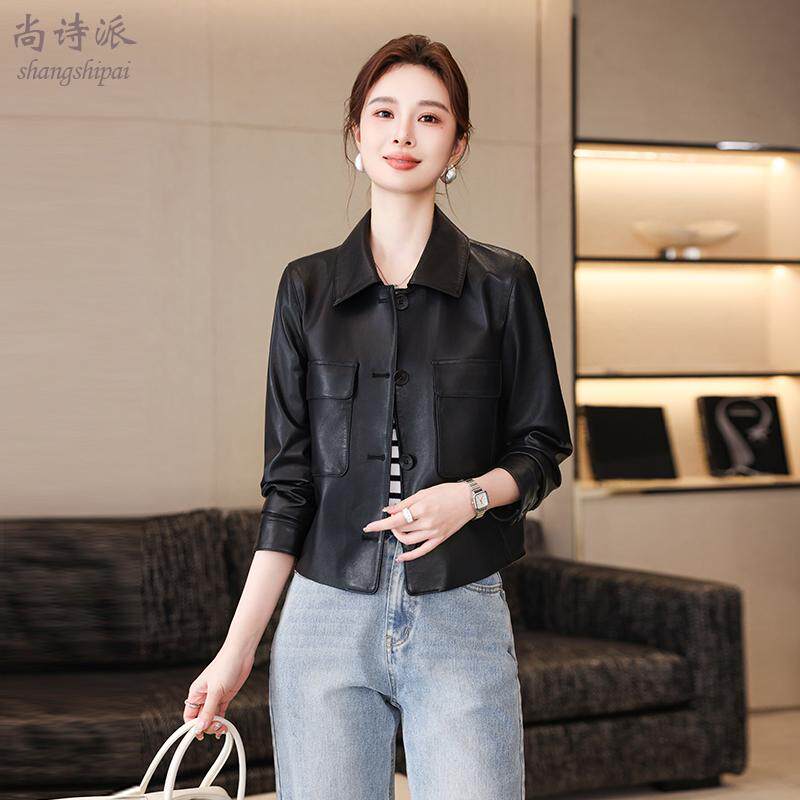 真皮皮衣女短款 春秋海宁高级绵羊皮中年妈妈夹克休闲外套 2025新款