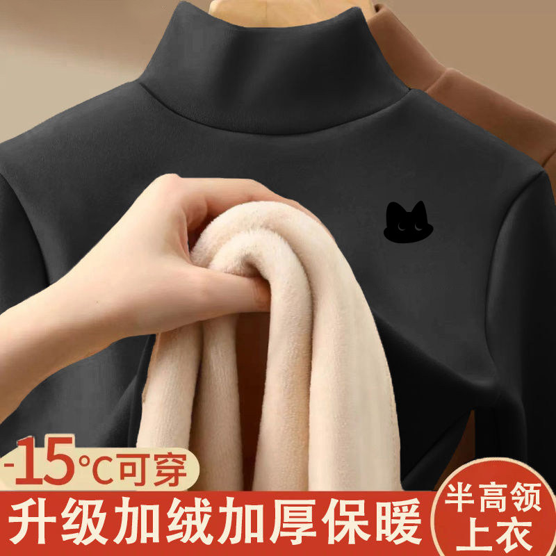 欧洲站高品质羊羔绒半高领长袖 卫衣chic青少年保暖防寒内搭打底衫