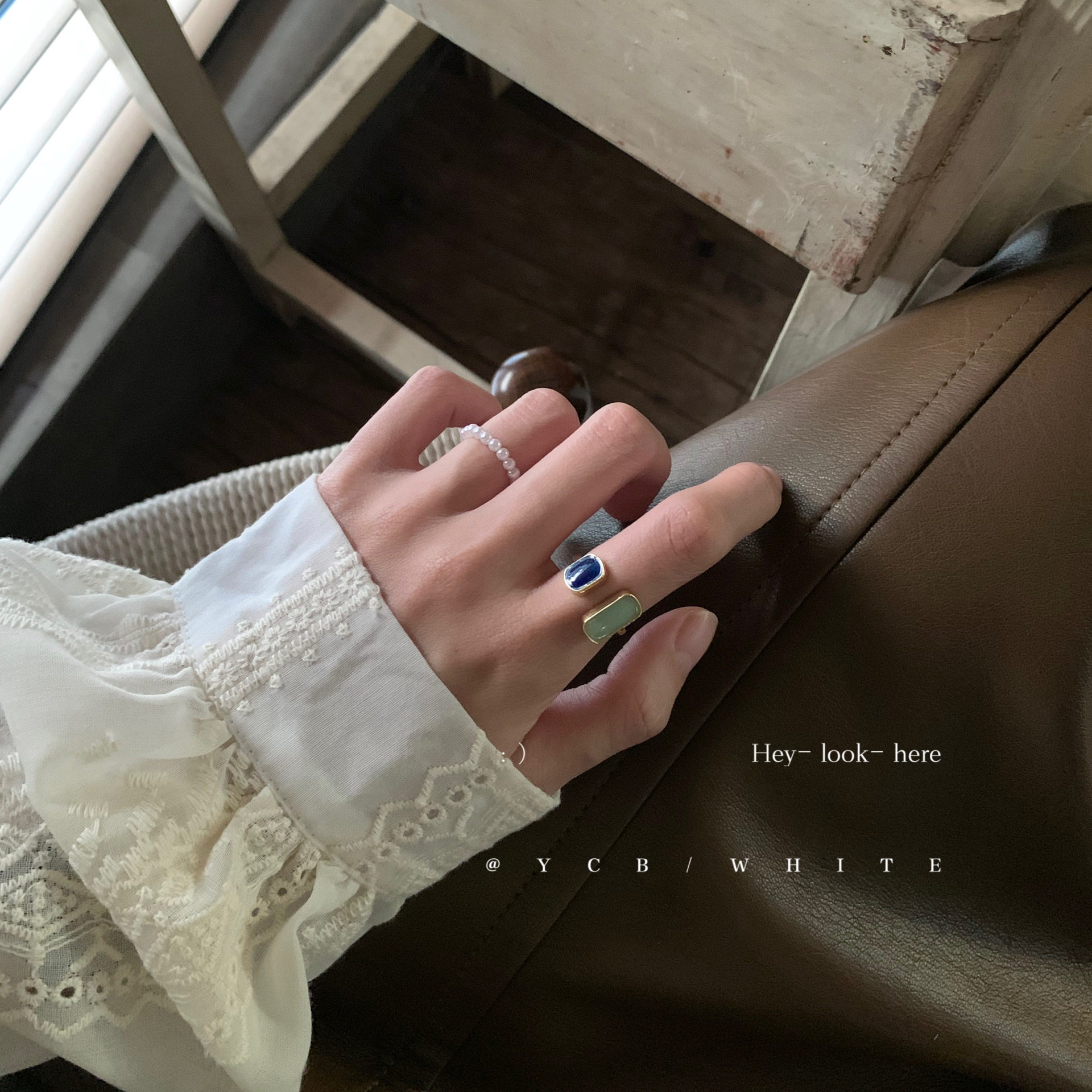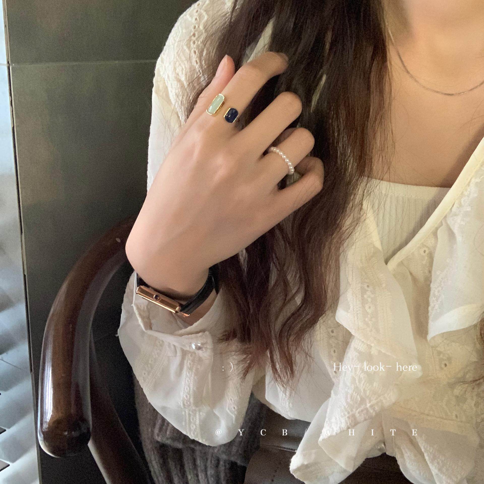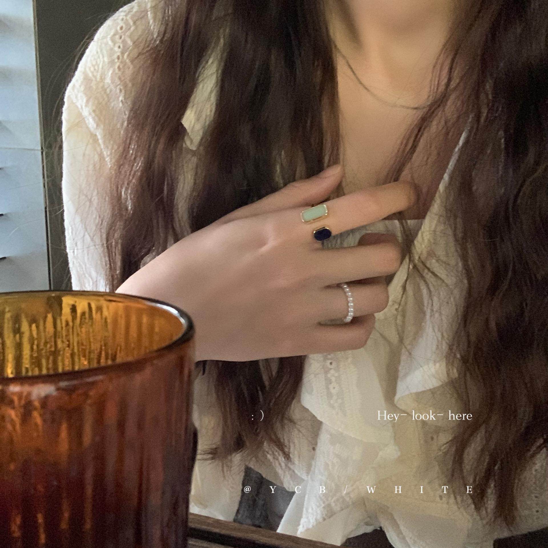 「Blue蓝调时刻」轻奢气质百搭珍珠戒指套装 指环开口 小众设计个性