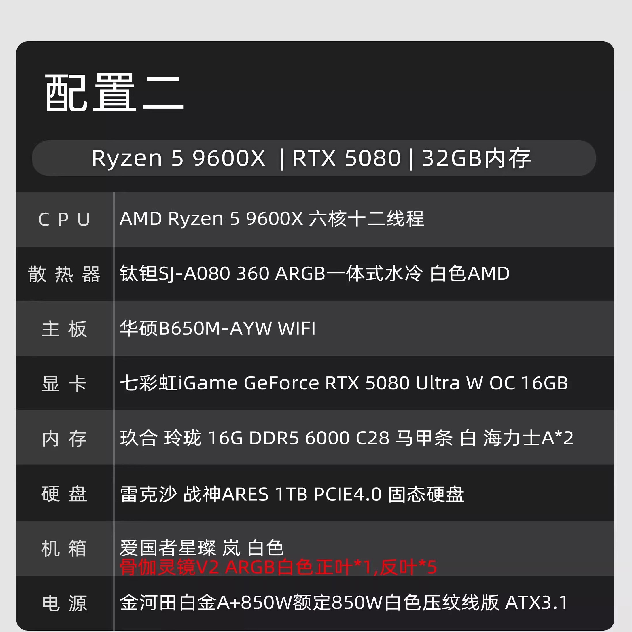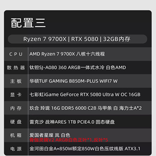 9800X3D游戏主机电脑 9700X 5080纯白海景房14600KF 9600X