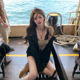 懒懒llan 套装 伦敦往事 短裤 女新 慵懒松弛感复古牛仔外套 你