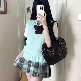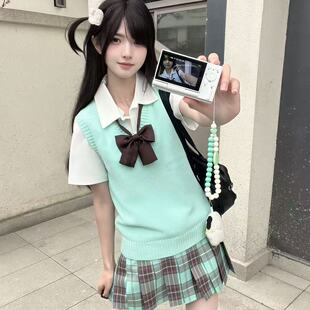 绿色JK格裙制服套装 原创 御茶家正版 学院风百褶裙子 巧心薄荷