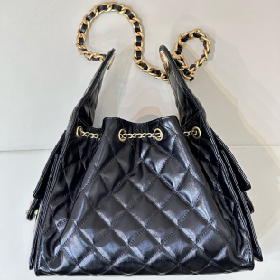 25bag小香风hobo小号嬉皮包女真皮菱格单肩链条抽绳水桶包腋下包