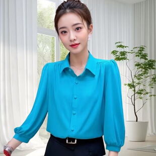 衬衫 大码 女2026新款 薄款 遮肚宽松百搭女士上衣 妈妈纯色雪纺衫 夏季