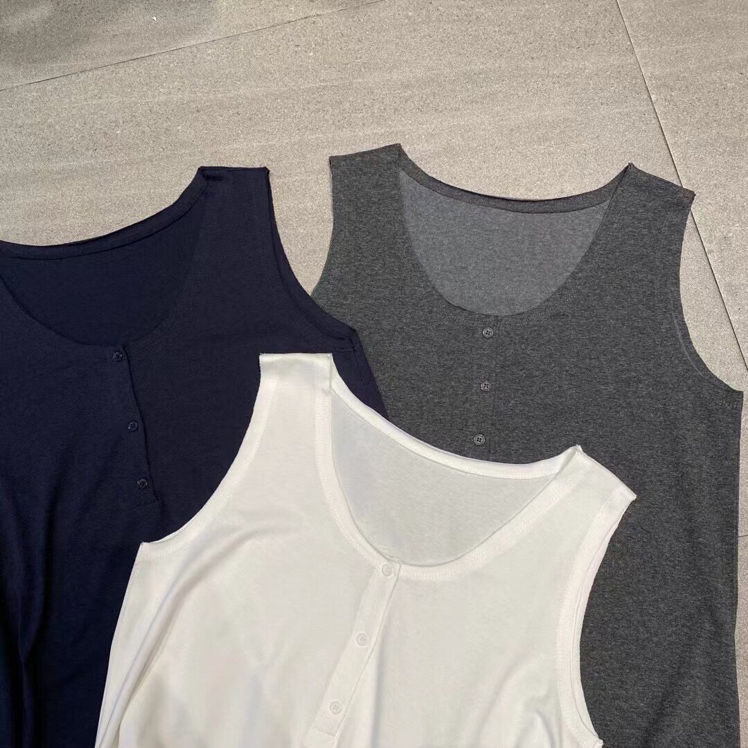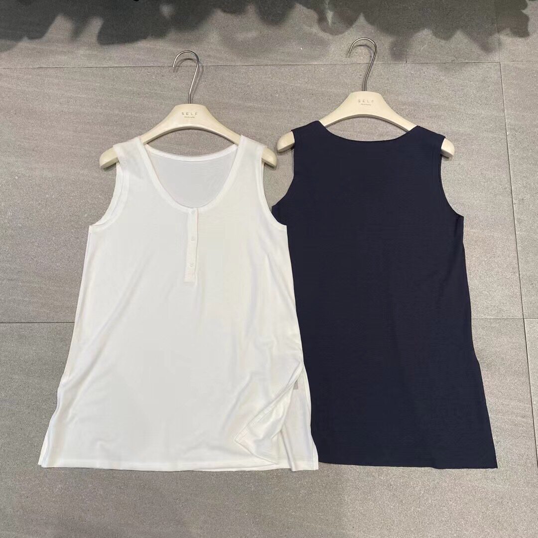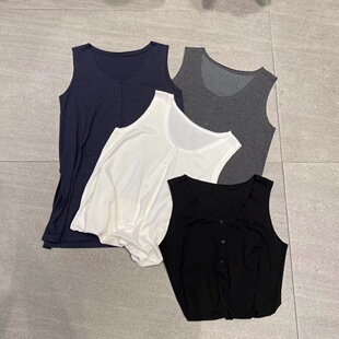 时尚 SELF中长款 韩版 新款 宽松百搭上衣女9771 毛边系扣背心2025夏装