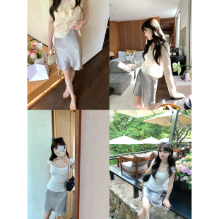 现货AHY 优雅气质100醋纤丝滑缎面垂感细节精致半身裙新品