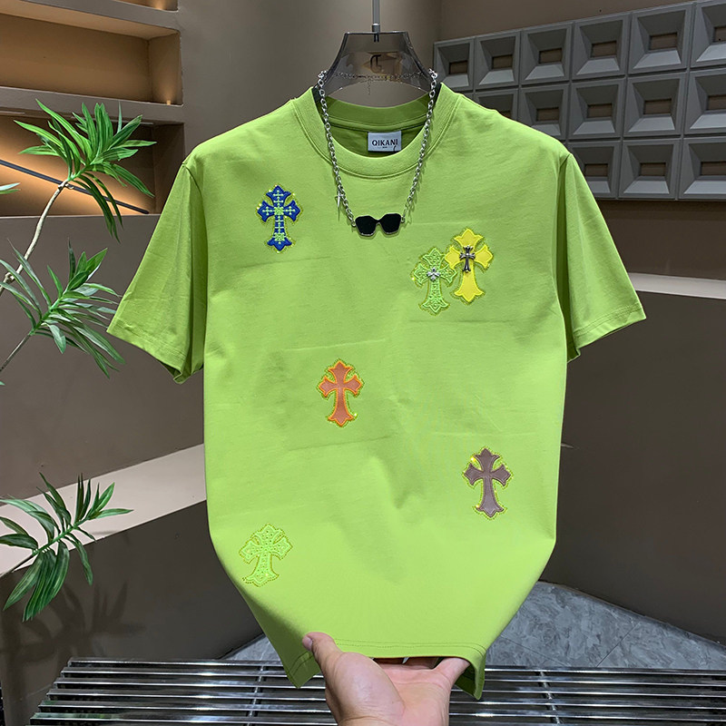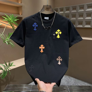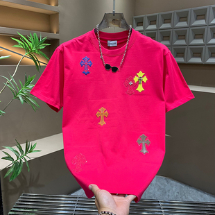 多巴胺圆领气质半袖 时尚 重工潮牌个性 男士 轻奢十字架百搭帅气短袖