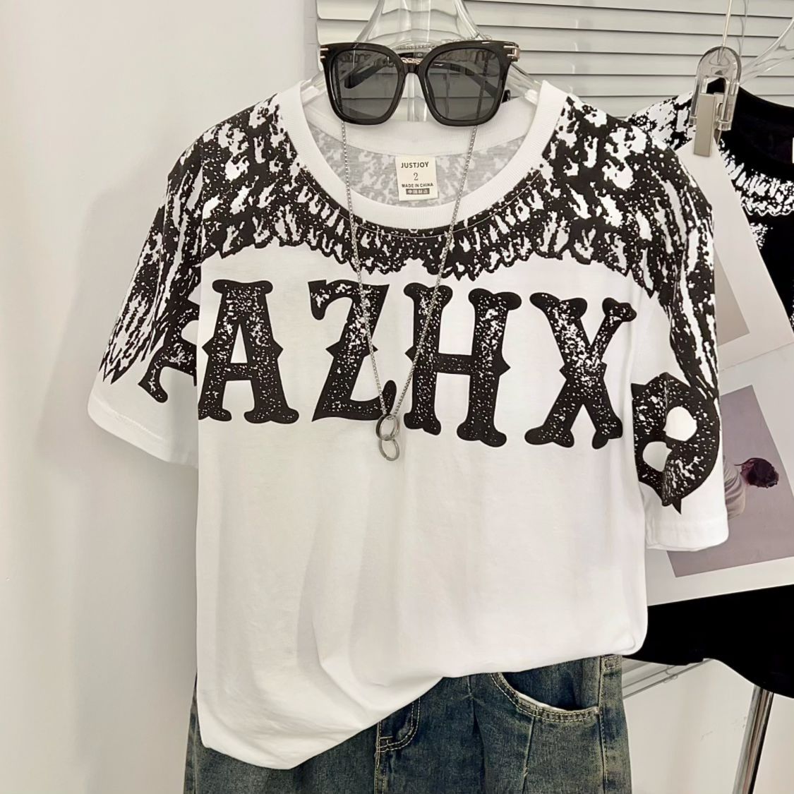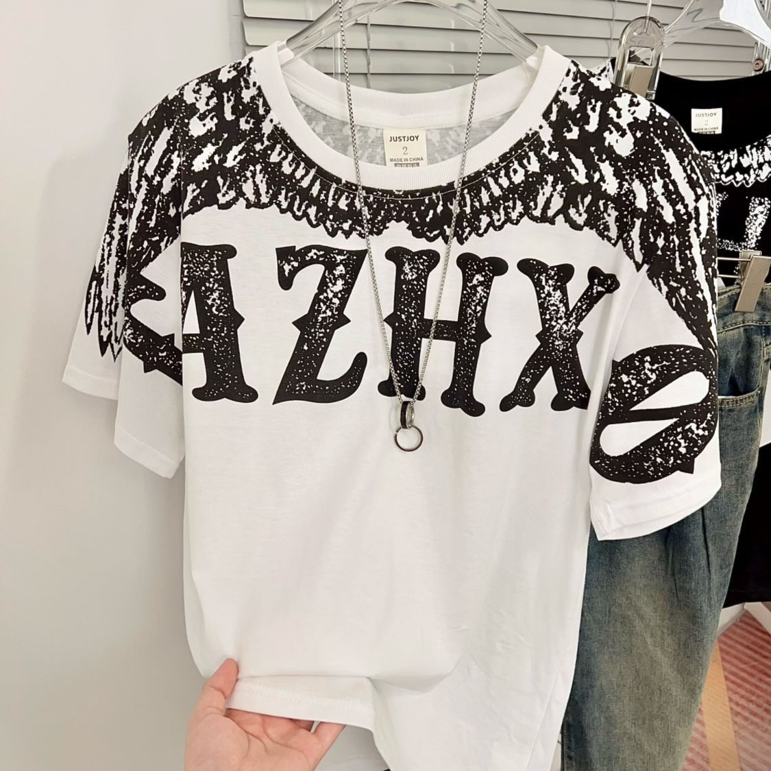 时尚 原创 潮牌翅膀印花短袖 美式 圆领T恤上衣 21支210g精梳纯棉夏季