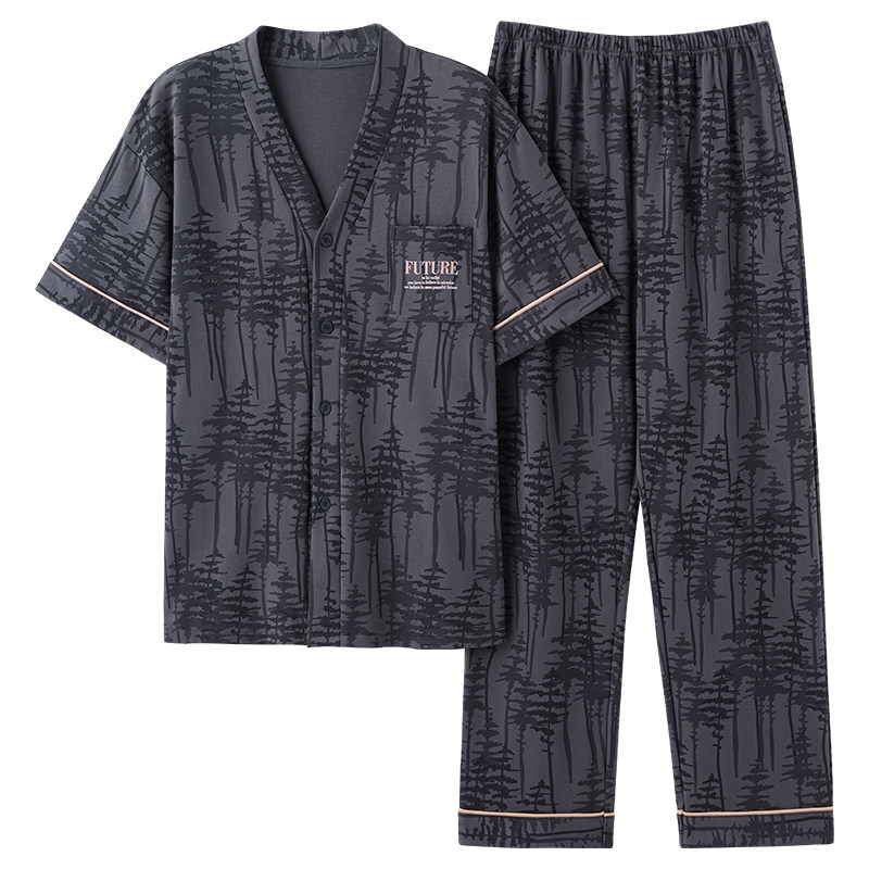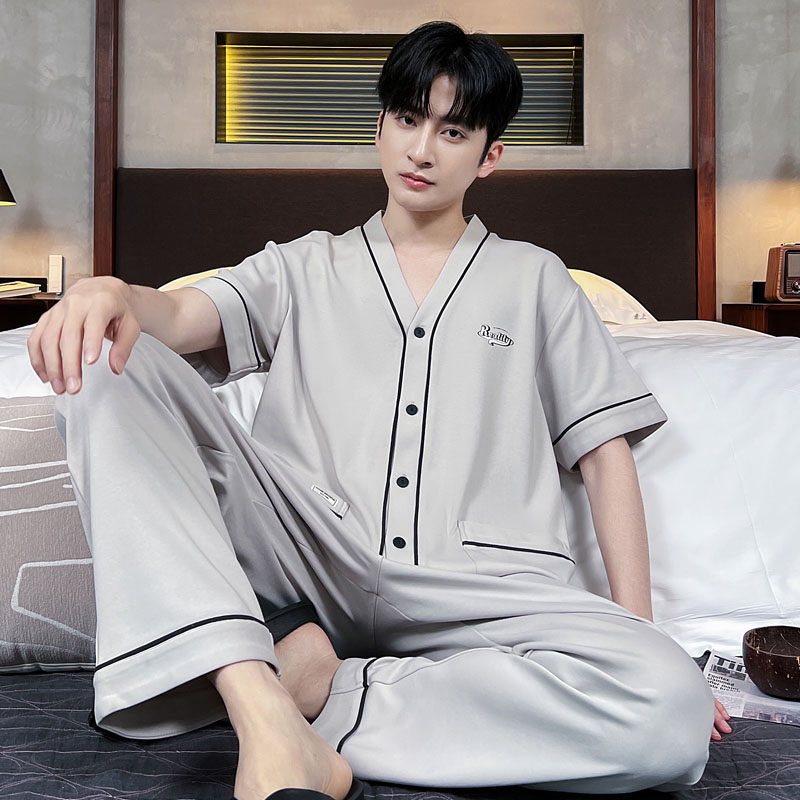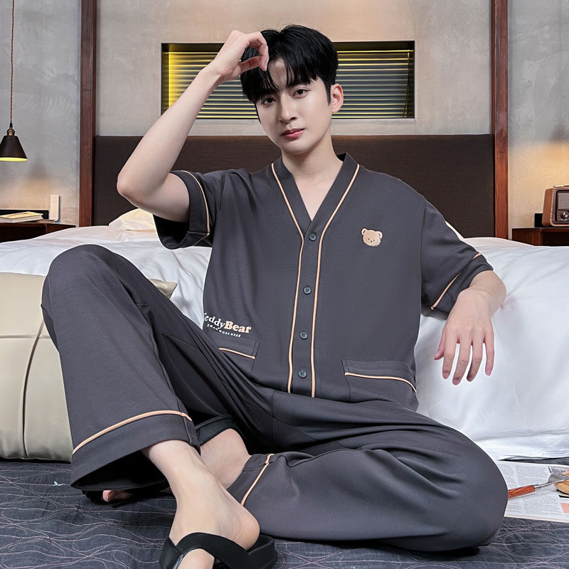 韩范青少年家居服两件套装 浪莎纯棉睡衣男夏季 长裤 短袖 网红风薄款