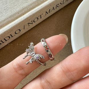 甜酷液态蝴蝶开口戒指女小众设计感银色食指戒冷淡风镂空素圈指环