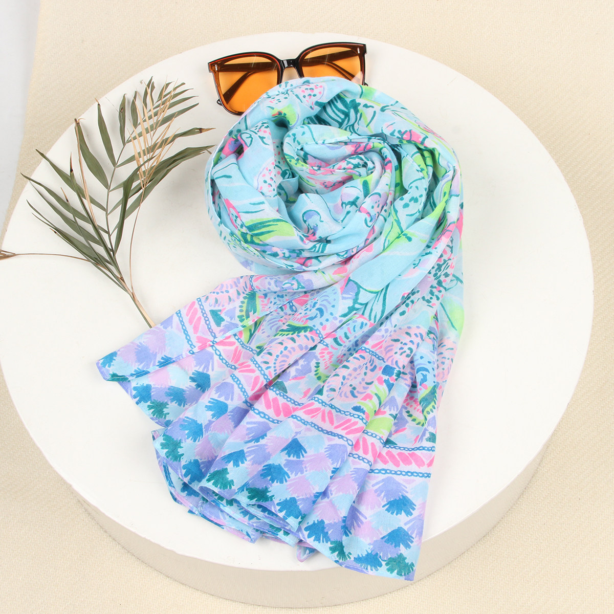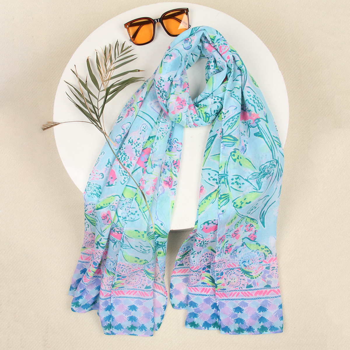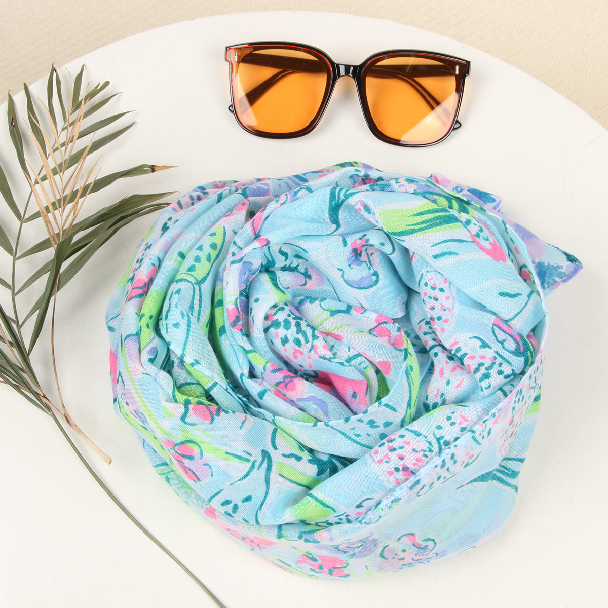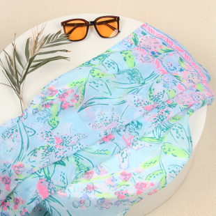 海边度假风植物花朵超漂亮美国lilly pu卷边荧光色印花围巾外贸单