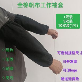 劳保套袖 电焊隔热耐脏肘部防护用品 男女工作加厚全棉帆布黑色长款