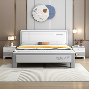 实木床现代简约白色储物1.8米双人床1.5单人床经济型全实木小户型