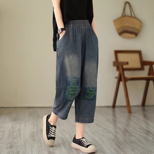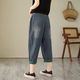 裤 薄款 子2025新款 大码 牛仔裤 胖mm宽松显瘦七分哈伦老爹裤 女士夏季