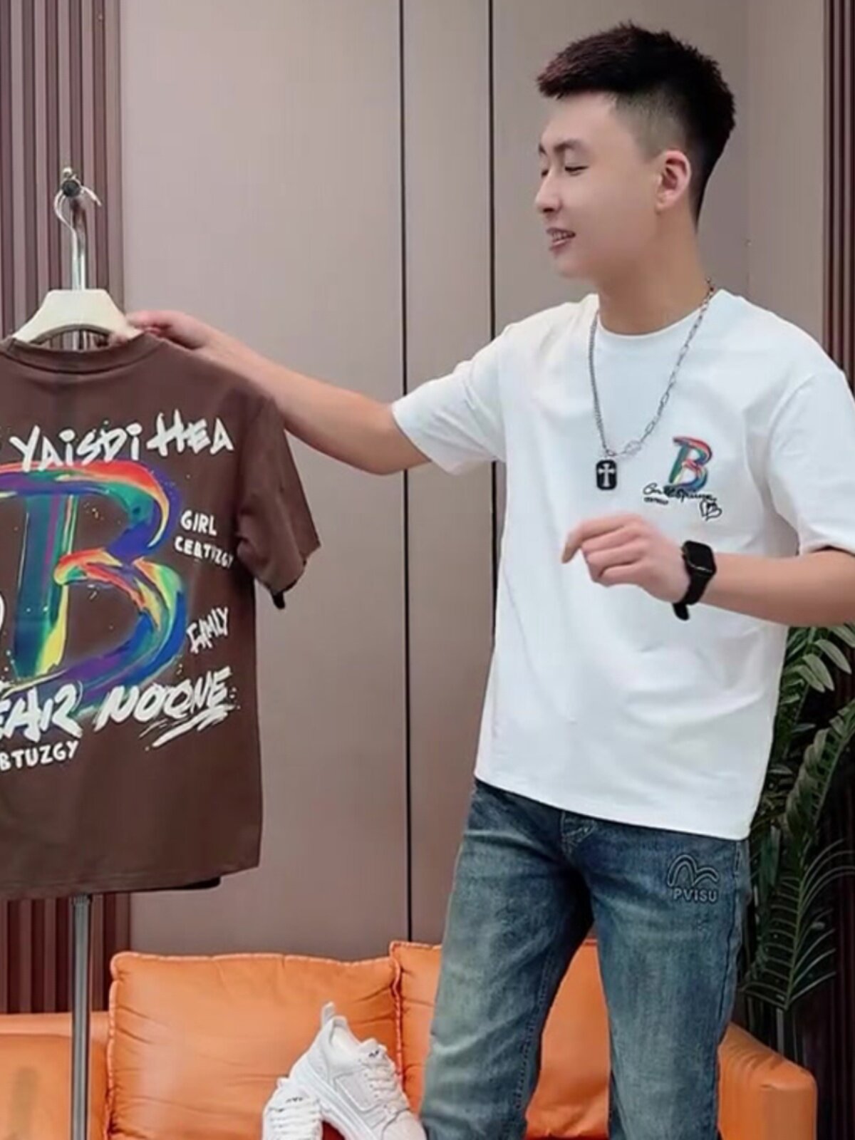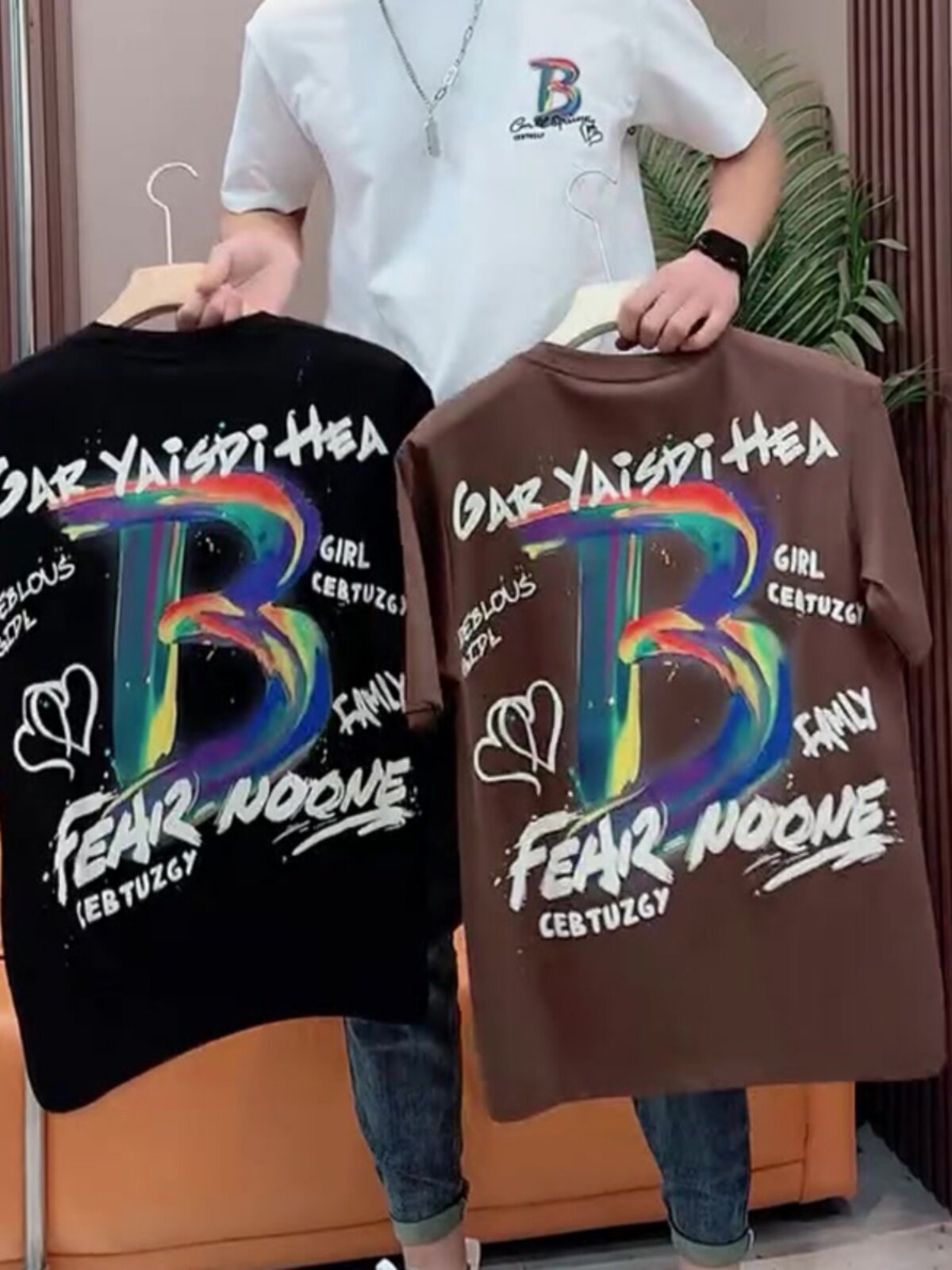 t恤男生字母B情侣半袖 潮牌潮流后背大图印花短袖 打底上衣 新款 夏季