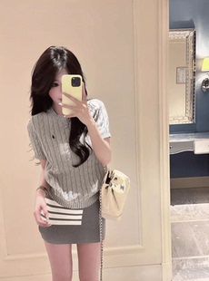 TB包臀裙高腰包裙半身裙女 针织衫 夏季 一整套搭配复古麻花刺绣短袖