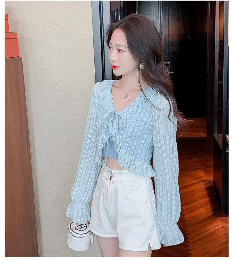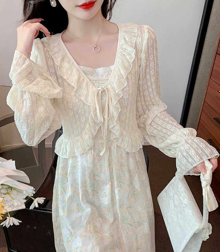 雪纺上衣荷叶边蕾丝披肩短款 吊带连衣裙开衫 外套女 爆款 今年流行